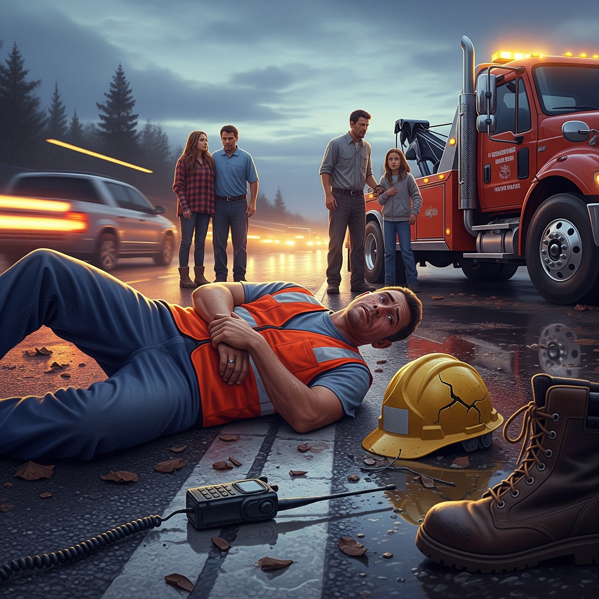Imagine a tow truck driver trying to help someone whose car broke down. They're focused on getting the car hooked up, maybe thinking about the family waiting inside their warm vehicle. Meanwhile, cars are whizzing by, sometimes going very fast. It only takes a moment of a driver not paying attention, or going too quickly, for a terrible accident to happen.